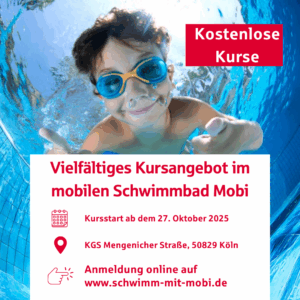 Vielfältige kostenlose Kursangebote online! Das mobile Schwimmbad Mobi ist an seinem 1. Standort an der KGS Mengenicher Straße angekommen – und mit ihm starten neue