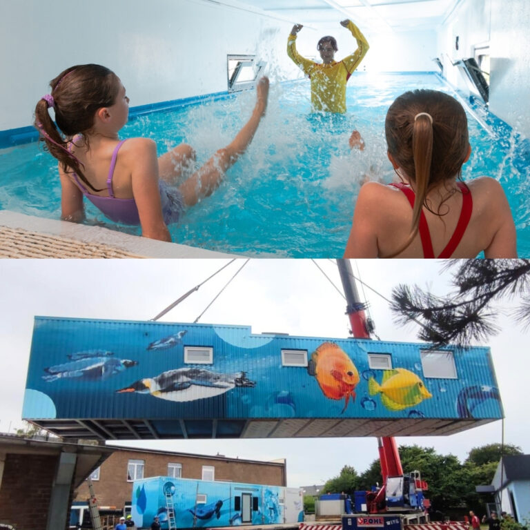 Der mobile Schwimmcontainer ermöglicht eine intensive und individuelle Betreuung in kleinen Gruppen – direkt vor Ort und ohne lange Anfahrtswege. So können Kinder schneller die Schwimmkurse durchlaufen, ihr Seepferdchen-Abzeichen früher erreichen und ihren Platz für weitere Schwimmanfänger freimachen.